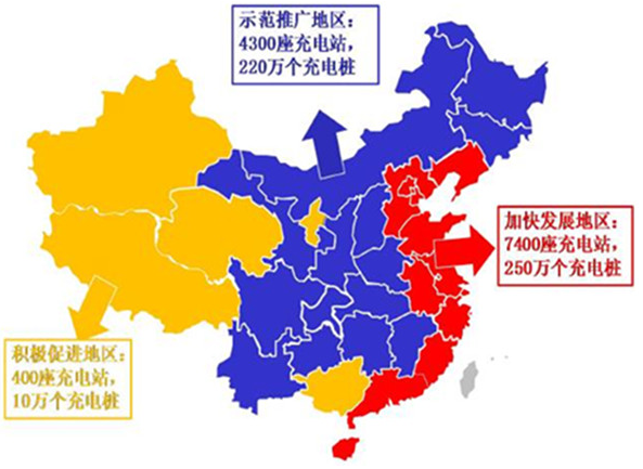 為加強規劃指導,《電動汽車充電基礎設施發展指南(2015~2020年)》提出我國充電基礎設施發展的目標,到2020年新增集中式充換電站超過1.2萬座,分散式充電樁超過480萬個,以滿足全國500萬輛電動汽車充電需求。并將全國分為加快發展地區、示范推廣地區、積極促進地區三個區域,明確分區域建設目標。并要求“新建住宅配建停車位應100%建設充電基礎設施或預留建設安裝條件,大型公共建筑物配建停車場、社會公共停車場建設充電基礎設施或預留建設安裝條件的車位比例不低于10%,每2000輛電動汽車應至少配套建設一座公共充電站”。
