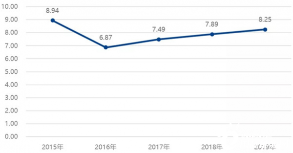 圖3 ?2015~2019年新能源汽車增量與公共充電樁增量比值變化